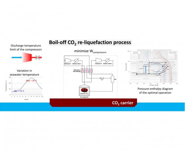 Optimal design and operating condition of boil-off CO2 re-liquefaction process, considering seawater temperature variation and compressor discharge temperature limit